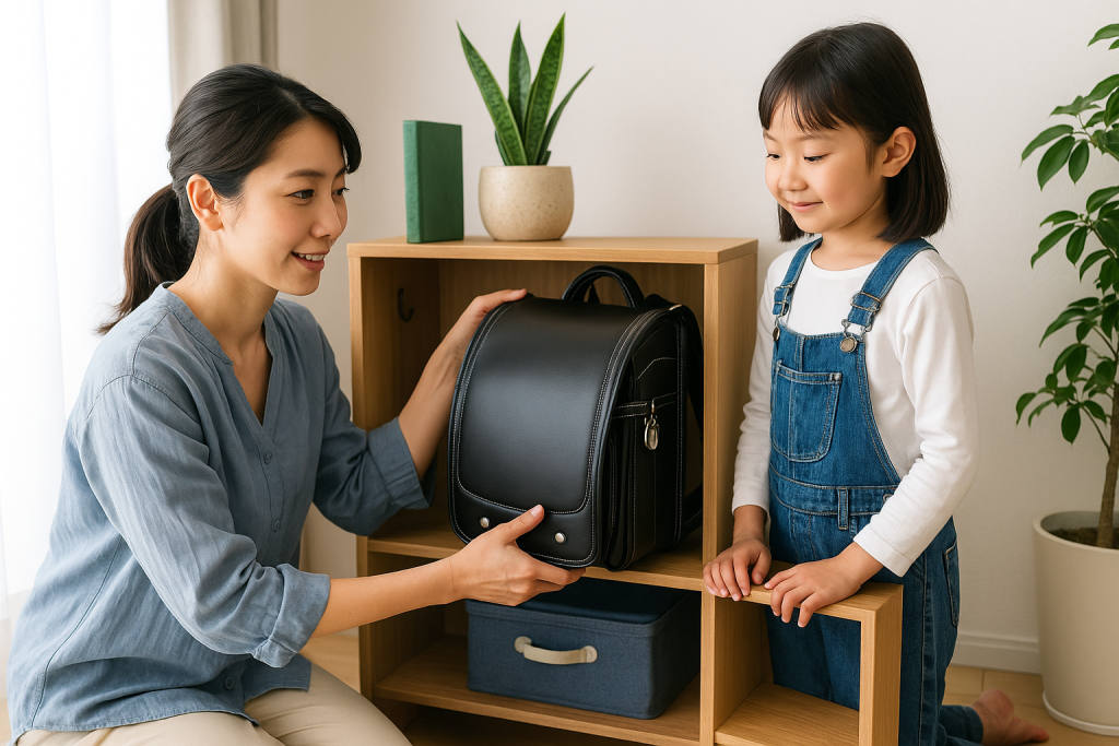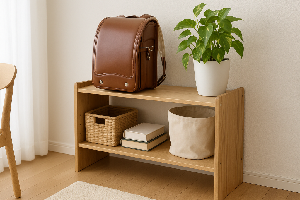 ランドセルだけでなく、筆箱・体操服・連絡帳などもまとめて収納することで、忘れ物を防ぎやすくなります。あらかじめ「ランドセルと一緒に置くもの」を決めておくと、毎日の支度がぐっと楽になります。
