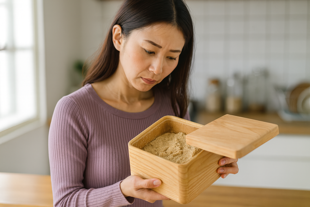 しばらく放置してしまったぬか床は、まずは目視で全体の状態を確認しましょう。明らかに色が変わっていたり、質感がいつもと違うと感じたら、無理に再開せずに一度リセットすることを検討してみてください。無理に使い続けようとすると、日々のお世話が負担になってしまうこともあります。