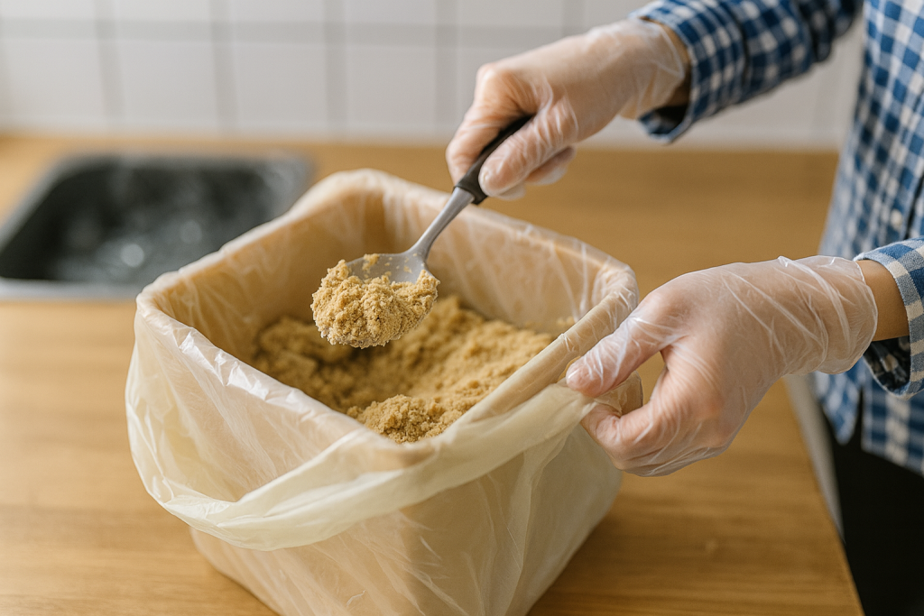手順はとてもシンプルです。容器からぬか床をすくい出してビニール袋に入れ、空気を抜きながらしっかりと口を縛ります。袋の外側を新聞紙で巻いておくと、においが漏れにくく、万が一破れても周囲を汚さずに済みます。最後に可燃ごみとして指定の袋に入れれば完了です。清潔に片付けることで、処分に伴うストレスも少なくなります。